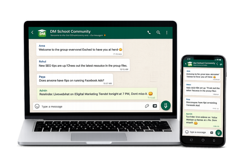 Join the DM School WhatsApp Community and stay connected with students, mentors, and updates. Get learning resources, course updates, and career guidance in one place.